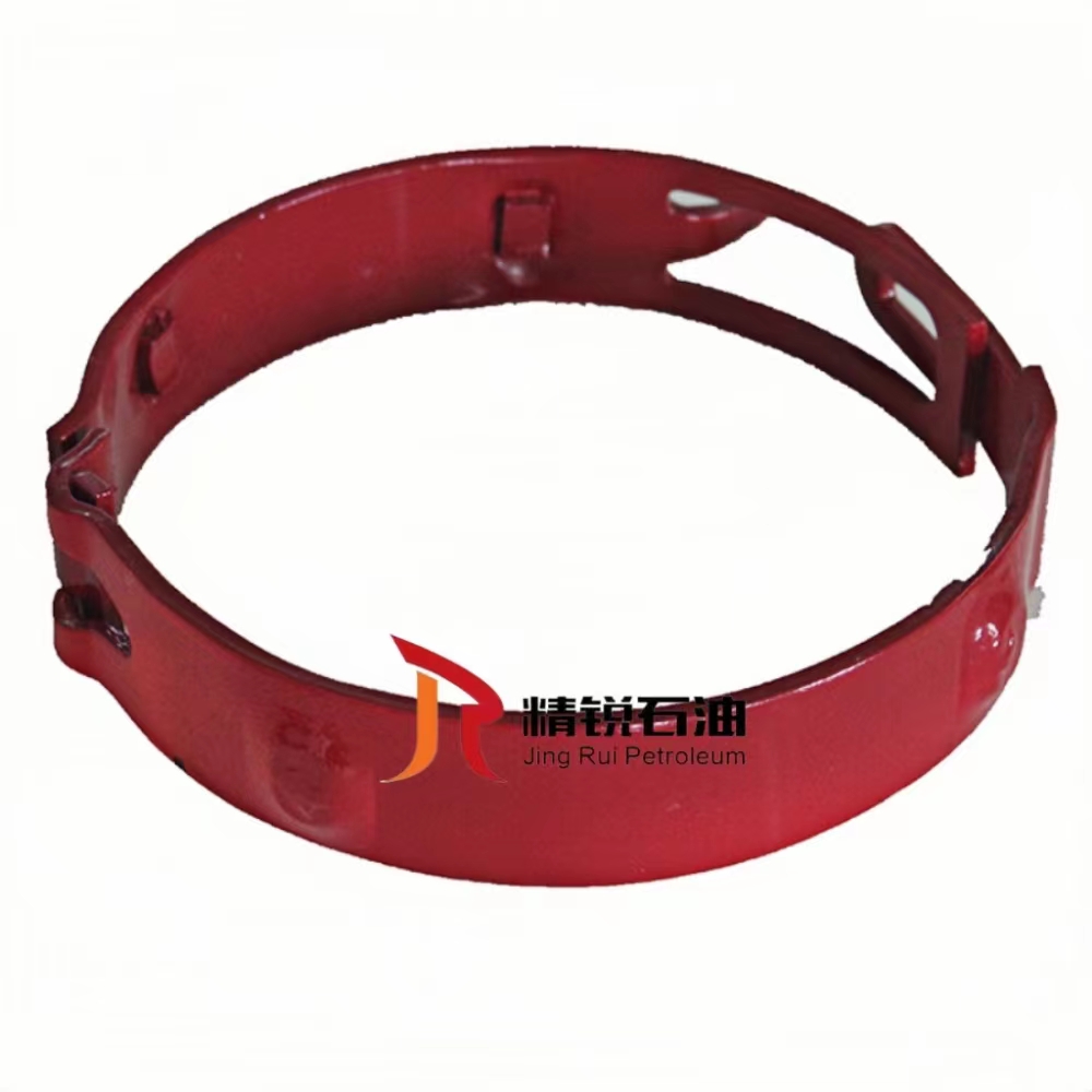 止动环(卡箍,定位器)又叫限位环,止动圈,制动圈等,可安装在套管的任何位置,用来限制扶正器或水泥伞在内套管上的轴向滑动,以保证扶正器或水泥伞在设计位置上。有顶丝式,固定螺钉式和扣合式三种结构,有铰链型和滑套型,尺寸从4-1/2″到20″,并可按要求尺寸进行加工。